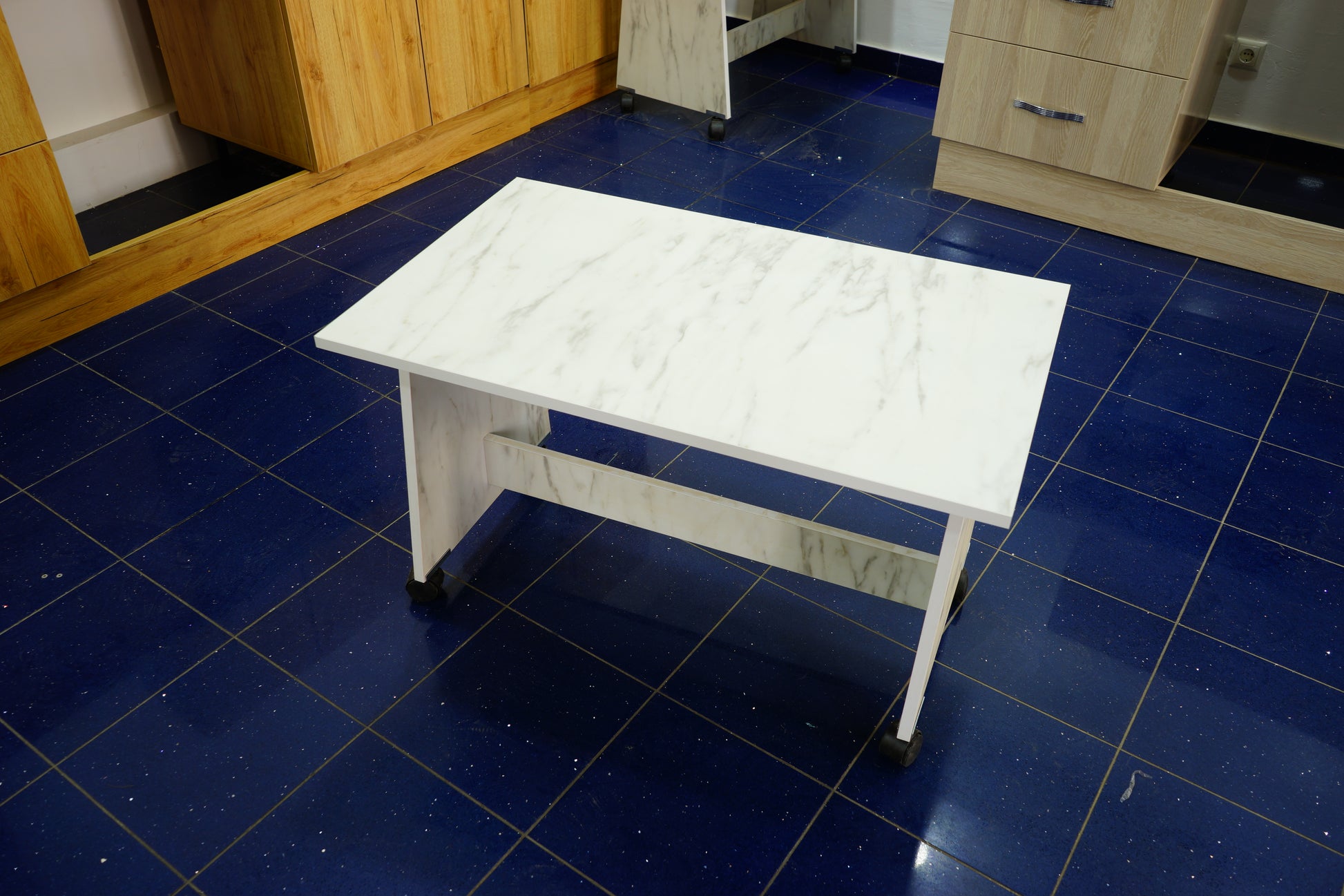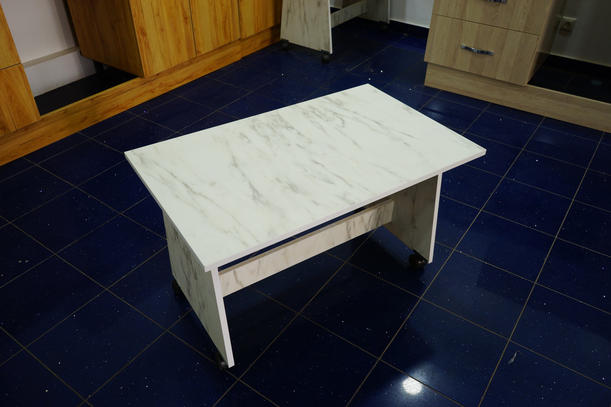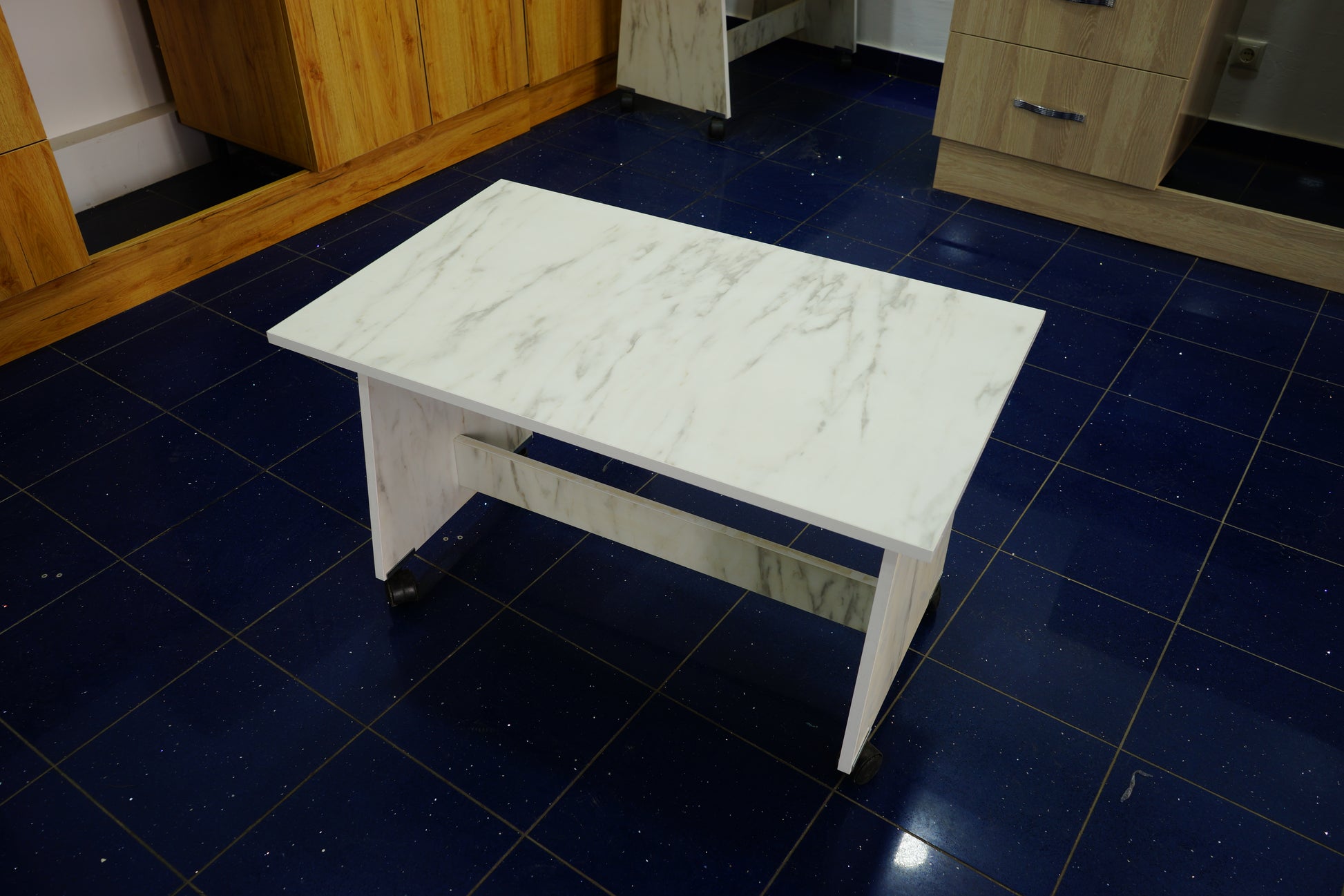 Unser moderner Couchtisch vereint schlichtes Design mit hoher Funktionalität. Hergestellt aus hochwertigem MDF und präsentiert in eleganter Marmor-Weiß Farbe, fügt sich dieser Tisch nahtlos in jedes Wohnzimmer ein.