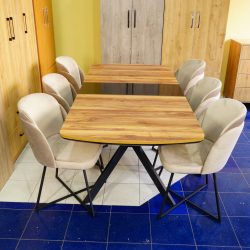 Erleben Sie mit unserem modernen Esstisch eine gelungene Kombination aus Funktionalität und ästhetischem Anspruch. Perfekt geeignet für gemütliche Abende in geselliger Runde.
